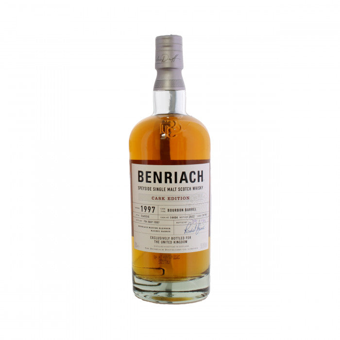 Personally selected by Master Blender Rachel Barrie from the Benriach eclectic cask collection, this single cask bottling was laid down in 1997, before being bottled in 2022 at 56.8% abv. Matured within a bourbon barrel which yielded just 161 bottles, each one is exclusive to the UK market.